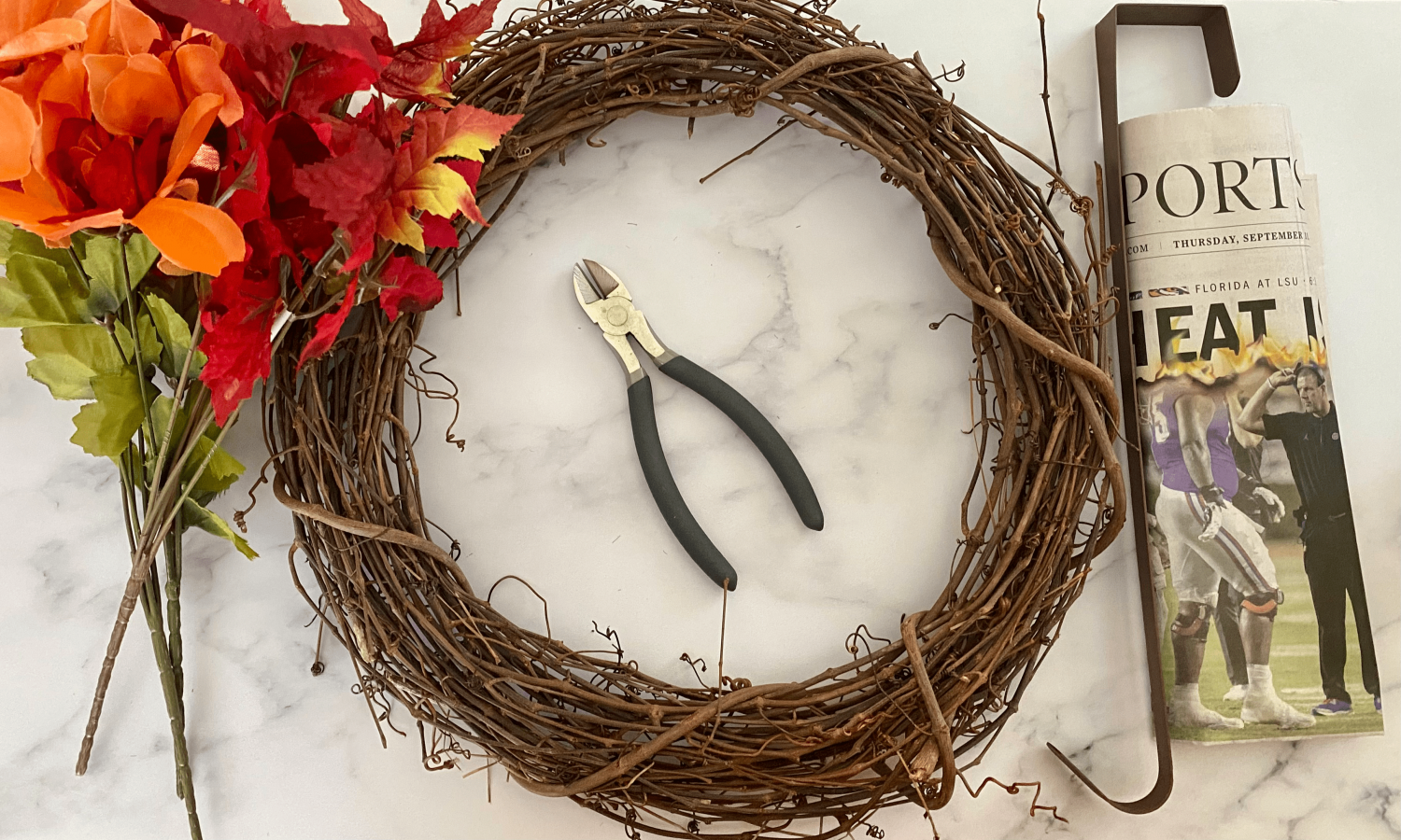 Your first step: gather all the supplies you’ll need to make your beautiful wreath.