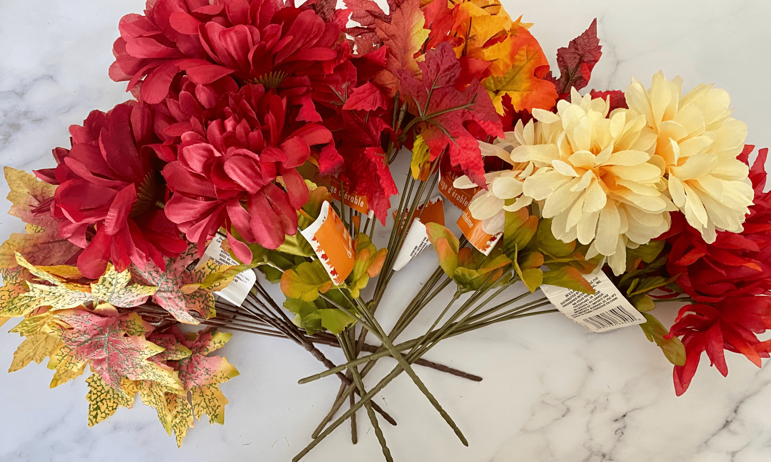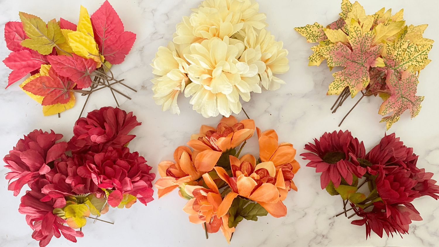 Take a look at your beautiful array of fall flowers and imagine how you want your wreath to look.
