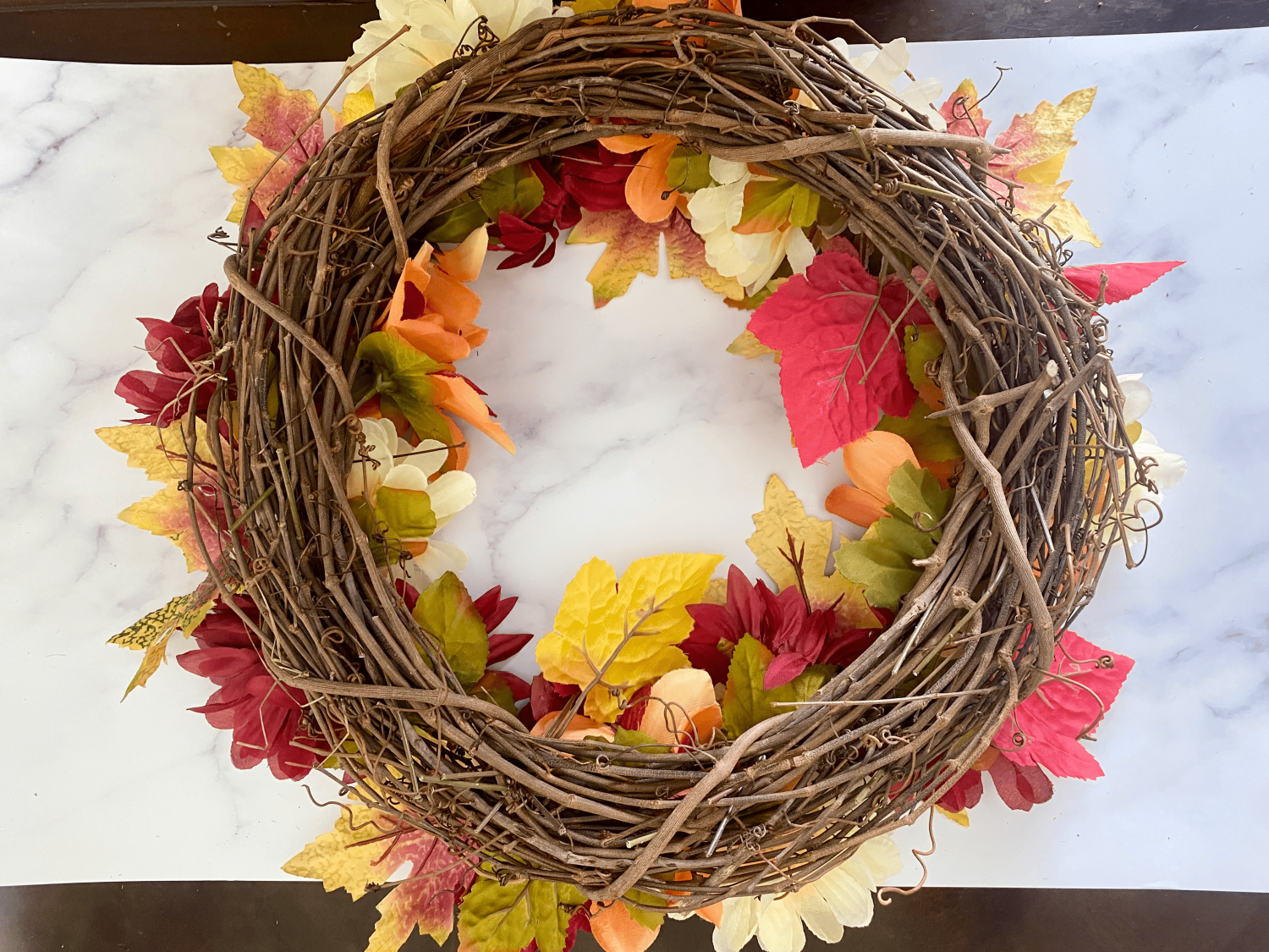 Also, can we all collectively say, “Goodbye!” to those expensive fall wreaths that are sold in stores every year?